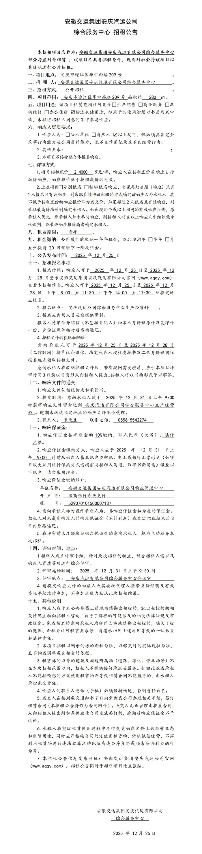 綜合服務(wù)中心 招租公告