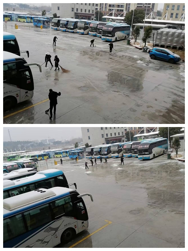 客運站務(wù)員們在停車(chē)場(chǎng)上,